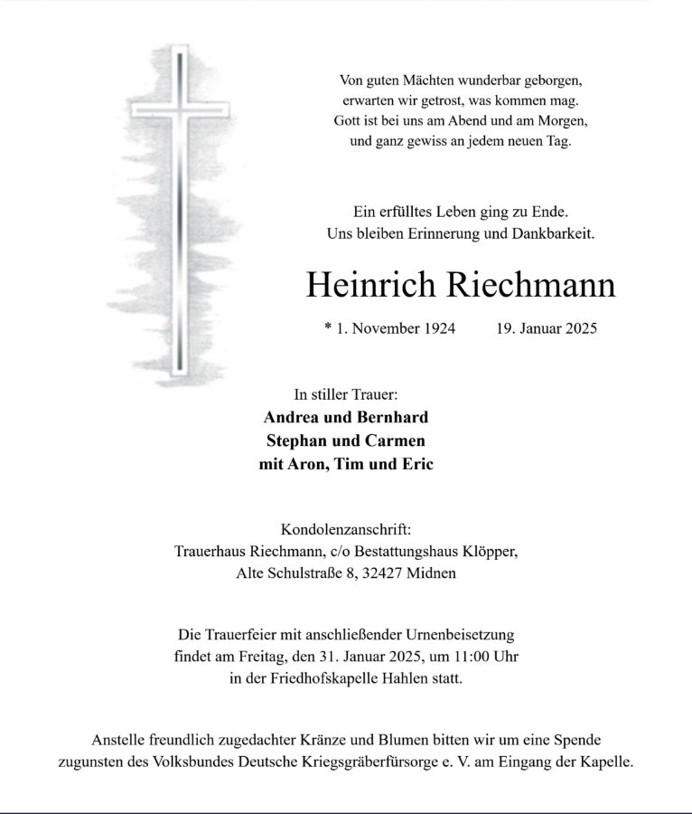 geboren am 1. November 1924 in Hahlen jetzt Minden