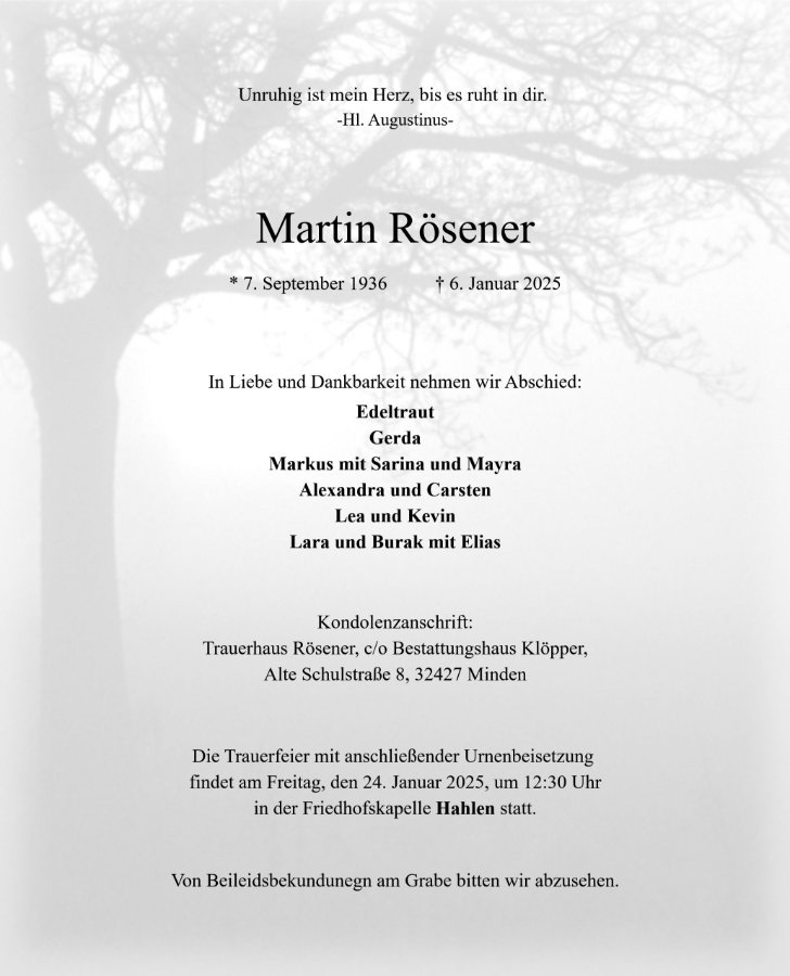 wir wünschen Ihnen von Herzen viel Kraft, dass Sie Menschen um sich haben, die Ihnen in dieser schweren Zeit beistehen und Halt geben. Zusätzlich können Sie auf dieser Gedenkseite Erinnerungen teilen und so das Andenken gemeinsam wachhalten.